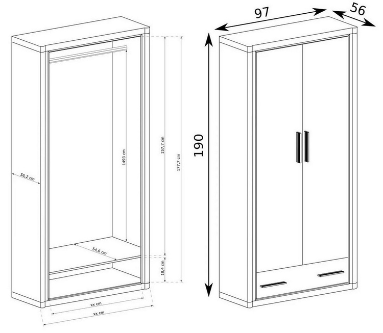 Šatní skříň 2-dveřová ze sektorové řady má šatní tyč, dole je jedna zásuvka. Má zajímavé provedení v podobě netradičně vyřezávaných vrchních a spodních desek. Systém je exkluzivní kolekce navržena v moderním duchu. Celá řada se vyznačuje masivním vzhledem a jednoduchými tvary. Nábytek je... více informací o zboží