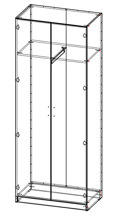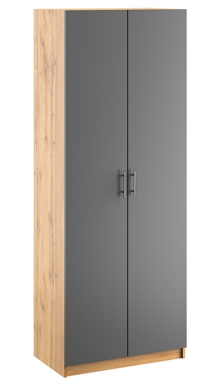 Skříň dvoudveřová je vyrobena z LTD desky odolné vůči poškrábání, korpus je v barvě dub apalačský, dvířka jsou v barvě antracit. Uvnitř se nachází 1 věšáková tyč a police. Dodáváme v demontovaném stavu.CASA 19022