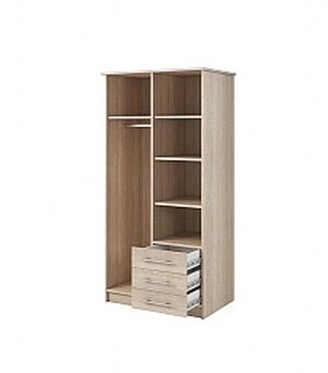 Vnitřní uspořádání skříně zahrnuje kombinaci polic a šatní tyčepro zavěšení oděvů, což vám umožní udržet šatník přehledněuspořádaný. Skříň je vyrobena z kvalitního lamina, což zaručuje jejídlouhou životnost a snadnou údržbu.