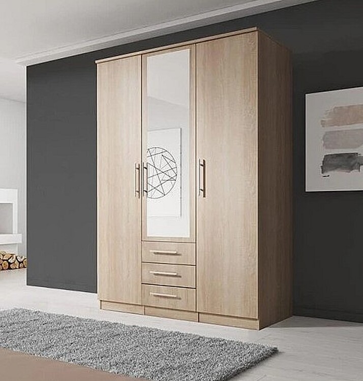 Skříň SANZIA 3D je praktické a stylové řešení pro vaši ložnici,předsíň nebo šatnu. S šířkou 150 cm, výškou 207 cm a hloubkou 61 cmposkytuje dostatek úložného prostoru pro vaše oblečení a doplňky.Skříň je vybavena třemi klasicky otevíratelnými dveřmi, z nichžstřední dveře mají zrcadlo, které opticky zvětší prostor a usnadníkaždodenní oblékání.