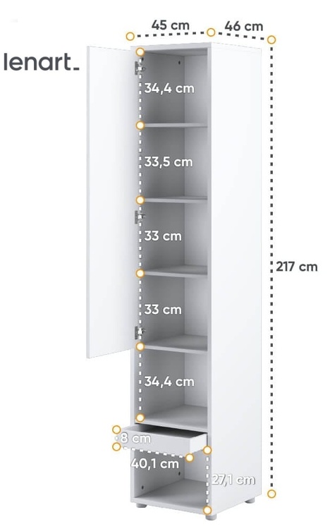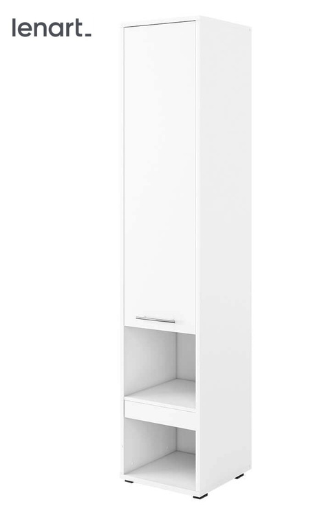 Skříňka bílá matná. Skříňka má 1 dvířka a pod nimi dvě poličky. Nábytek je vyroben z kvalitního lamina s ABS hranou. Lamino je odolné proti poškrábání, poškození, vlhkosti a vysokým teplotám. Vhodně doplňuje naše vertikální výklopné postele ze stejného sektoru. Dodáváme v demontovaném stavu.CASA 73005