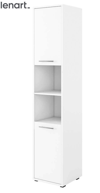 Skříňka bílá matná. Skříňka má 2 dvířka a uprostřed dvě poličky. Nábytek je vyroben z kvalitního lamina s ABS hranou. Lamino je odolné proti poškrábání, poškození, vlhkosti a vysokým teplotám. Vhodně doplňuje naše vertikální výklopné postele ze stejného sektoru. Dodáváme v demontovaném stavu.CASA 73005