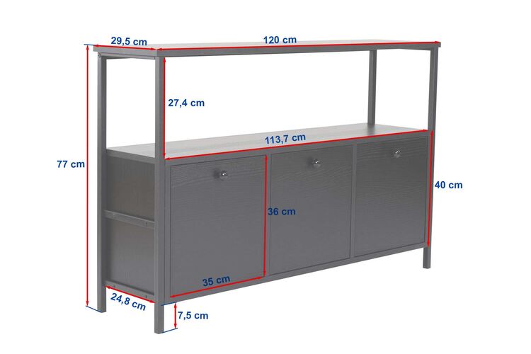 - Rozměry: šířka 120 cm, výška 77 cm, hloubka 29,5 cm