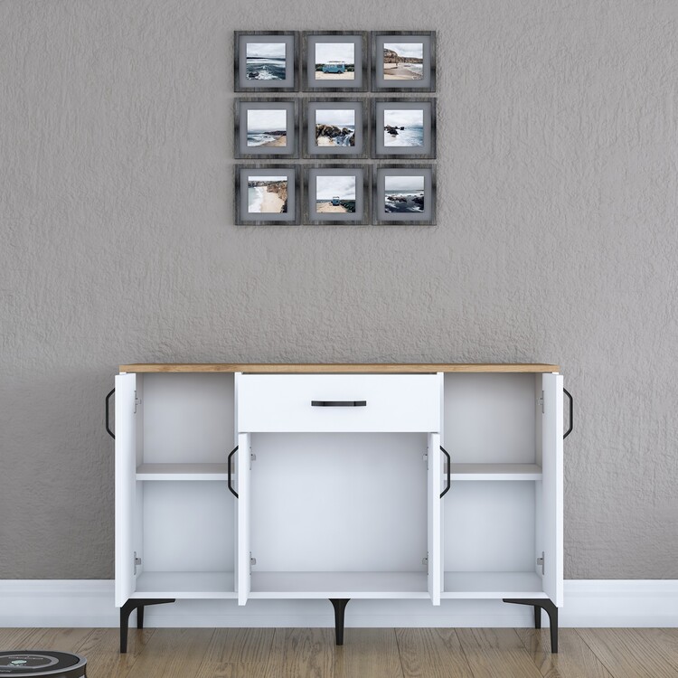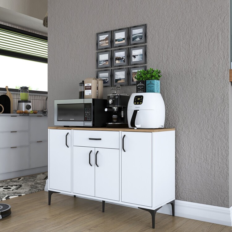 Kuchyňská skříňka kombinuje funkčnost a stylový design. Díkybílé barvě doplněné o ořechový dekorse skvěle hodí do každé kuchyně. Skandinávský styl a víceúčelový vzhled z ní činí praktický i estetický doplněk vašeho domova.