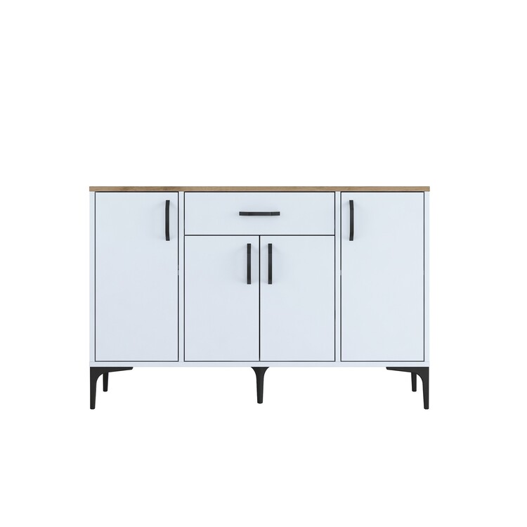 Skříňka poskytuje dostatek úložného prostoru díky čtyřem plným dvířkům a jedné praktické zásuvce. Je ideální pro uspořádání kuchyňských potřeb, nádobí nebo potravin. Použití kvalitních materiálů, jako je melamin a VT laminát, zajišťuje její dlouhou životnost a snadnou údržbu.