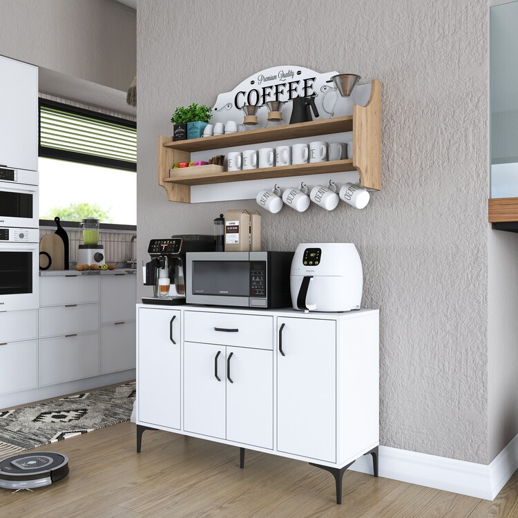 Skříňka je navržena tak, aby byla praktickým a elegantním doplňkem do vaší kuchyně. Díky kombinaci bílé barvya ořechového dekoru přináší do interiéru harmonii a moderní skandinávský styl.