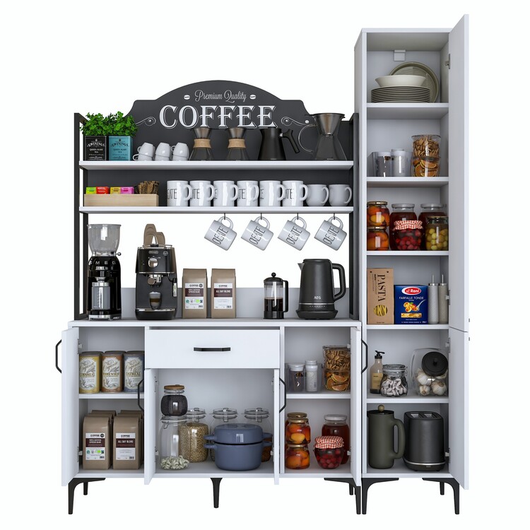 Policová skříň je navržena pro moderní kuchyň, kde kombinuje styl a praktičnost. Její čistý bílý design veskandinávském stylu přináší do interiéru eleganci a zároveň nabízí dostatek úložného prostoru pro každodenní potřeby.