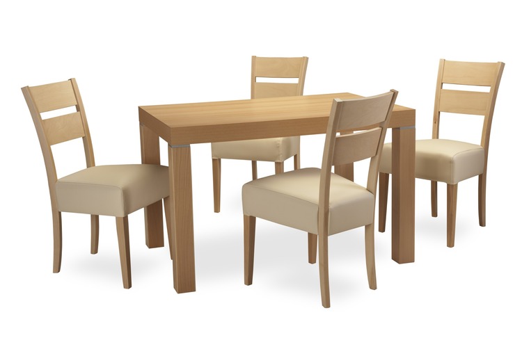 Deska stolu: laminoTloušťka desky: 76 mmHrana: ABS 2 mmNohy stolu: masiv buk, 8,5×8,5 cm