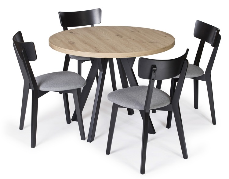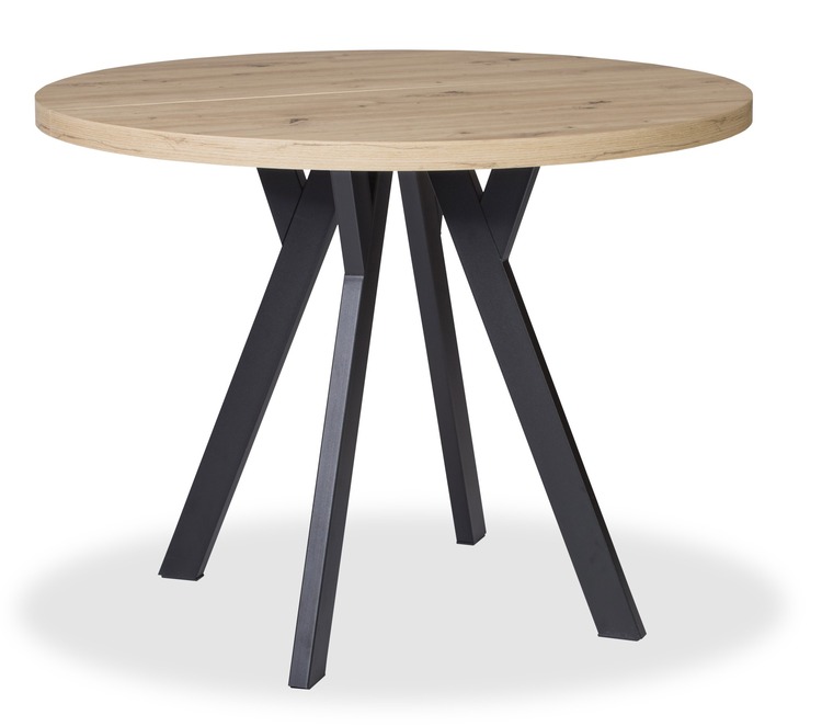 Kulatý jídelní rozkládací stůl o průměru 101 cm s možností rozkladu 2×49 cm.