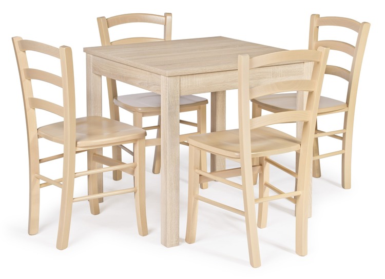 Deska stolu: lamino 18 mmHrany stolu: ABS 1 mmNohy stolu: MDF + folie 6×6 cm