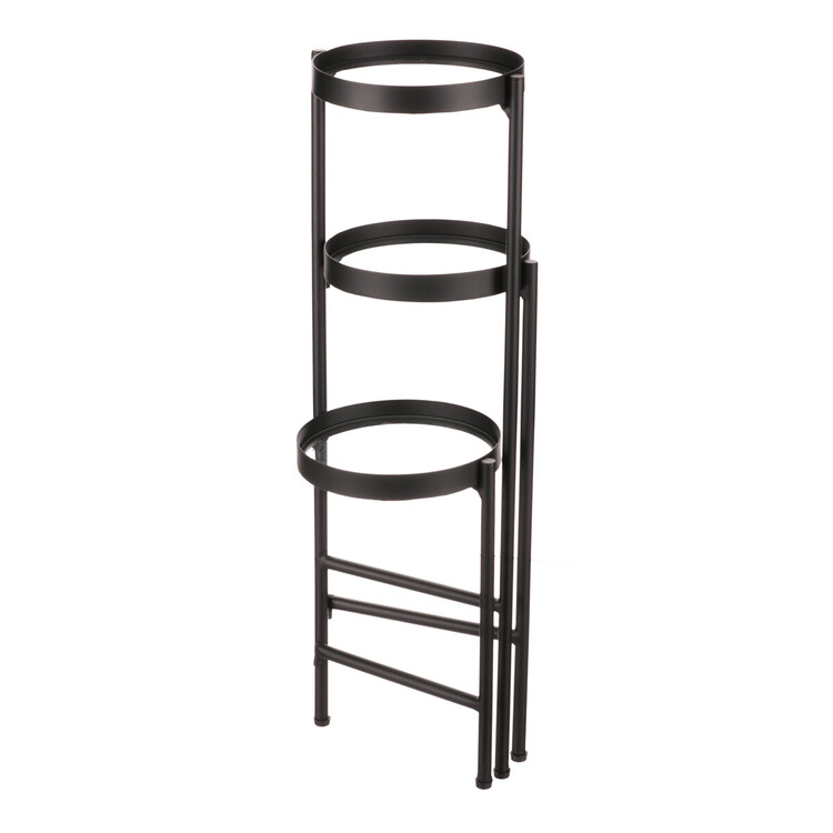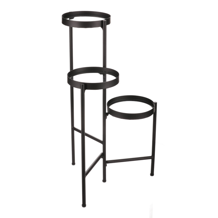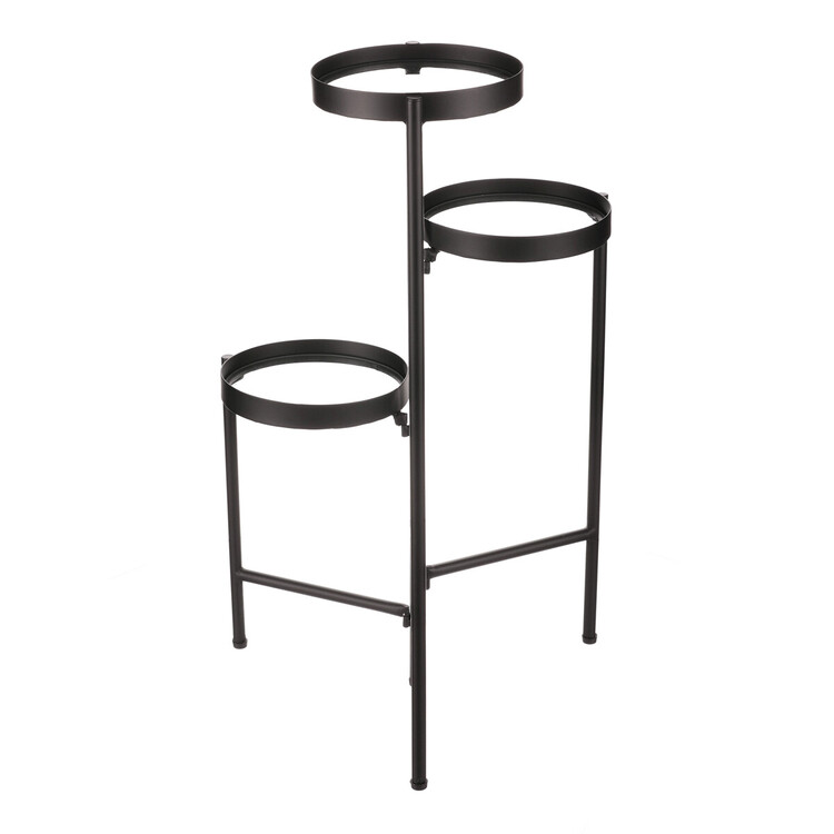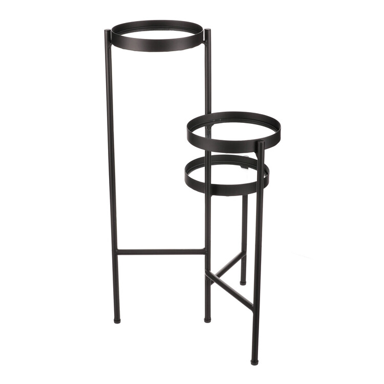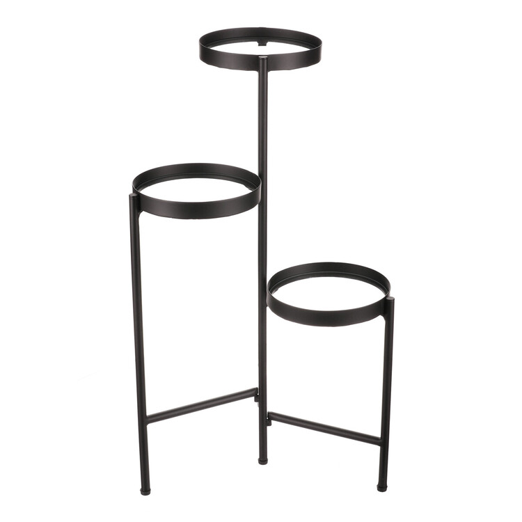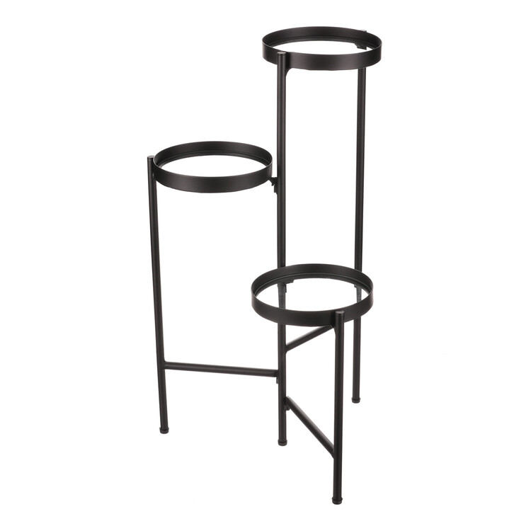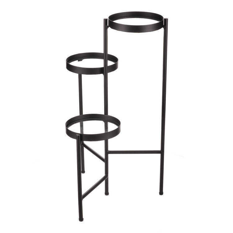 Bytový doplněk v podobě kovového stojanu v černé barvě bude skvělým pomocníkem pro prostorové umístění květin. Skládá se ze tří nosných ploch s podlážkami ze skleněných desek, které jsou v různých výškách. Svým provedením je uzpůsoben i pro umístění v rohu místnosti. Můžete tak krásně využít této mnohdy problematické plochy a terasovitě nechat vyniknout krásu rostlin na něm umístěných.