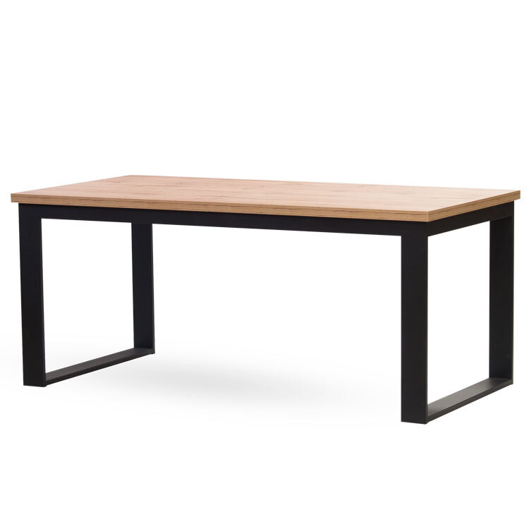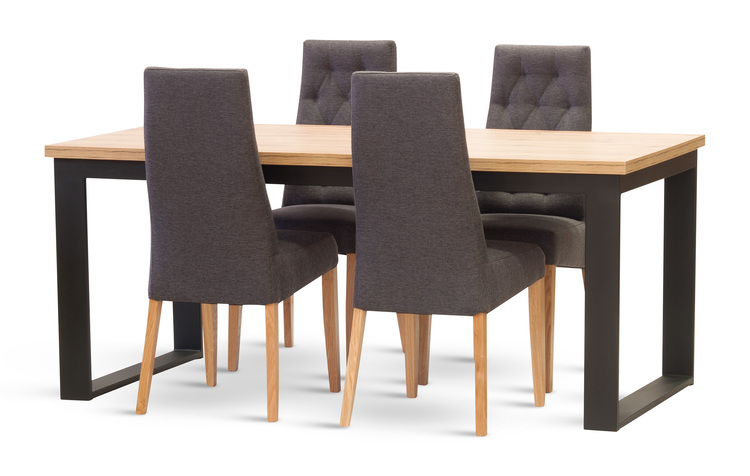 Moderní jídelní stůl s černou kovovou podnoží. Deska je lamino, v široké paletě odstínů – vždy s možností rozkládání.