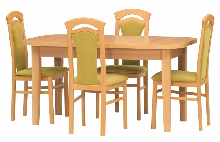 Robustní jídelní stůl se zaoblenými rohy. Deska lamino 36mm, nohy jsou masiv. Možnost zakázového provedení.