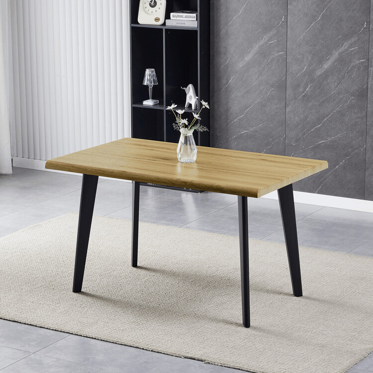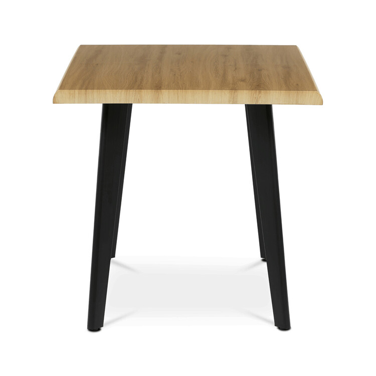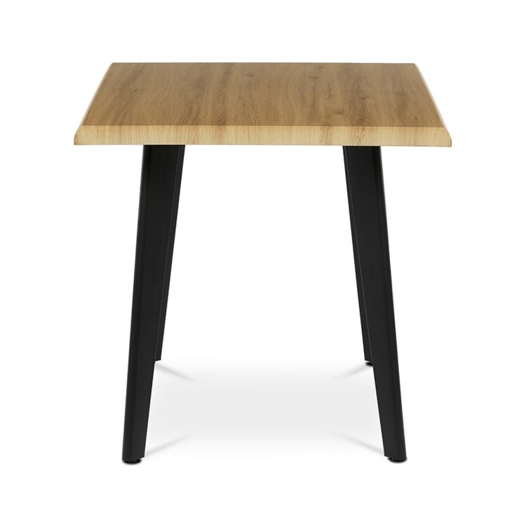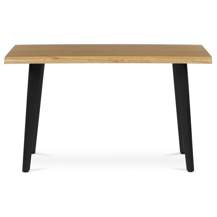 Tento jídelní stůl značky Autronic v dekoru divokého dubu vnáší do interiéru rustikální kouzlo s moderním nádechem. Obdélníková deska z kvalitního MDF materiálu imituje vzhled opracovaného dřeva a přidává prostoru na autentičnosti a teple. Černé kovové nohy přidávají industriální kontrast a zajišťují pevnost a stabilitu. Svým nadčasovým designem a praktickými rozměry 130×80×75 cm se tento stůl hodí do různých stylů jídelen i kuchyní. Vyberte si tento elegantní a odolný stůl od Autronic a dopřejte si pohodlné rodinné stolování.