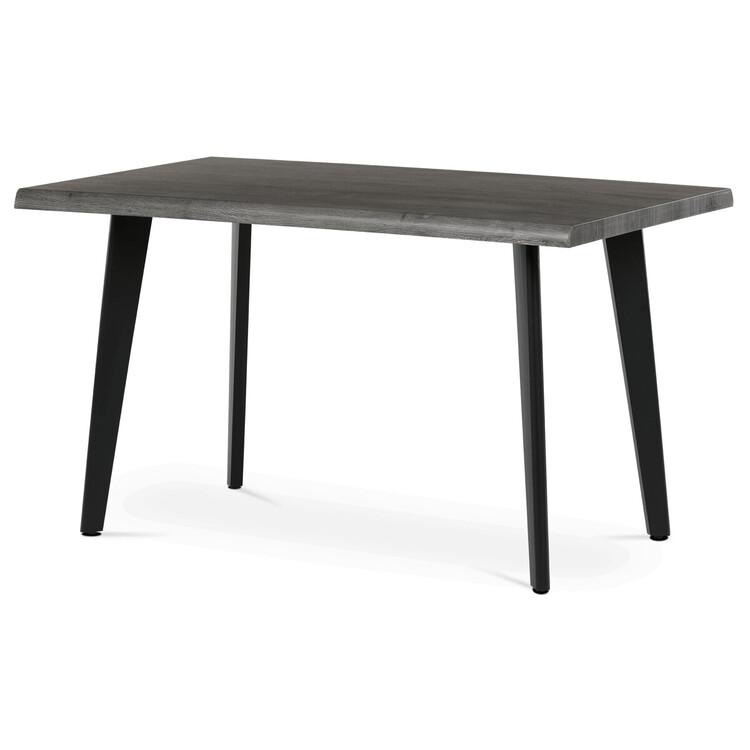 Tento jídelní stůl značky Autronic v dekoru šedého dubu vnáší do interiéru rustikální kouzlo s moderním nádechem. Obdélníková deska z kvalitního MDF materiálu imituje vzhled opracovaného dřeva a přidává prostoru na autentičnosti a teple. Černé kovové nohy přidávají industriální kontrast a zajišťují pevnost a stabilitu. Svým nadčasovým designem a praktickými rozměry 130×80×75 cm se tento stůl hodí do různých stylů jídelen i kuchyní. Vyberte si tento elegantní a odolný stůl od Autronic a dopřejte si pohodlné rodinné stolování.