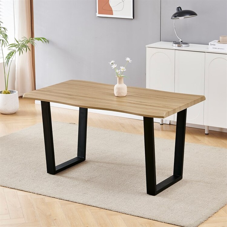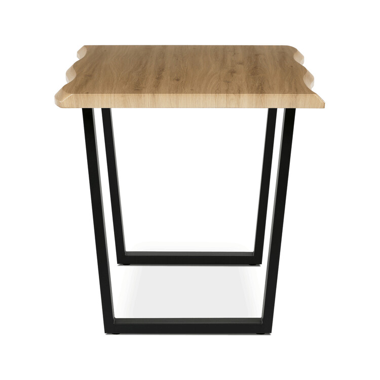 Jídelní stůl značky Autronic v industriálním stylu přinese do vaší jídelny výrazný designový prvek. Deska stolu v dekoru divokého dubu nabízí atraktivní strukturu a odolnost díky kvalitní MDF. Působivý vzhled je podtržen černými kovovými nohami, které poskytují stabilitu a vytvářejí moderní kontrast k odstínu divokého dubu desky. Atypický tvar desky dodává stolu originalitu, zatímco jeho pevná konstrukce zajišťuje dlouhou životnost. Tento stůl je ideální pro milovníky designu, kteří hledají spojení funkčnosti a stylu.