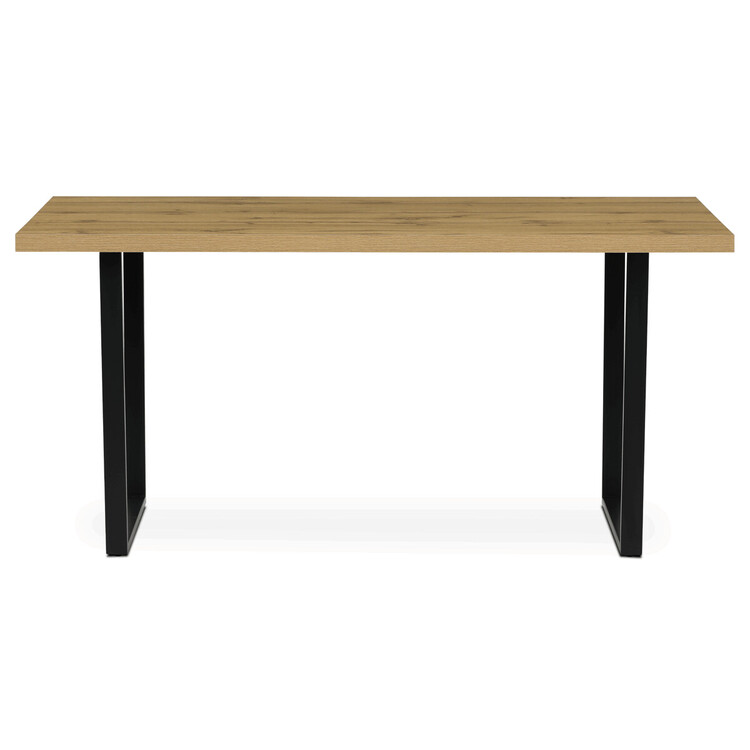 Jídelní stůl o rozměrech 160×80×76 cm kombinuje desku z hnědého lamina s dekorem dubu a stabilní kovovou podnož v černém matném provedení. Deska je opatřena ABS hranou, která chrání okraje před poškozením a usnadňuje údržbu, zatímco matný povrch zajišťuje příjemný vzhled bez lesku. Pevná... více informací o zboží