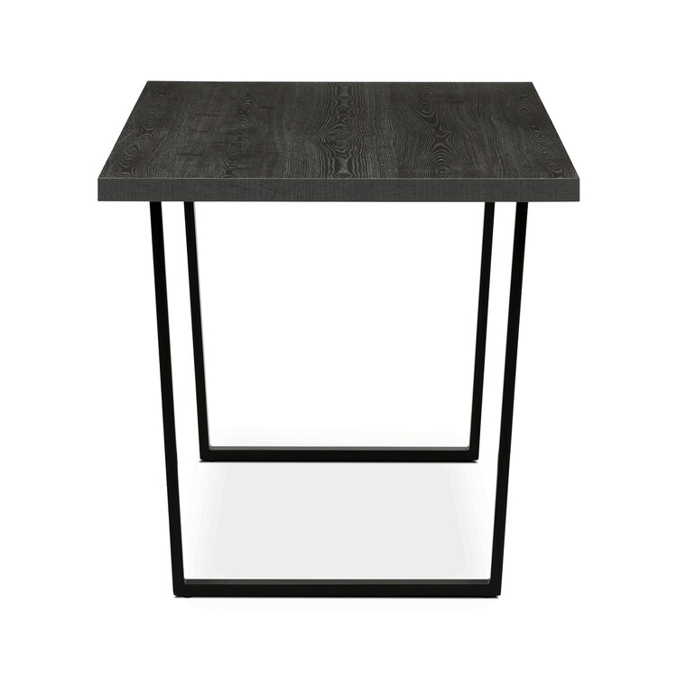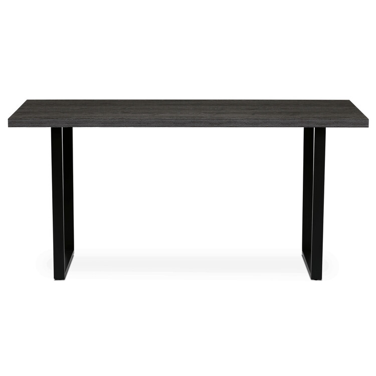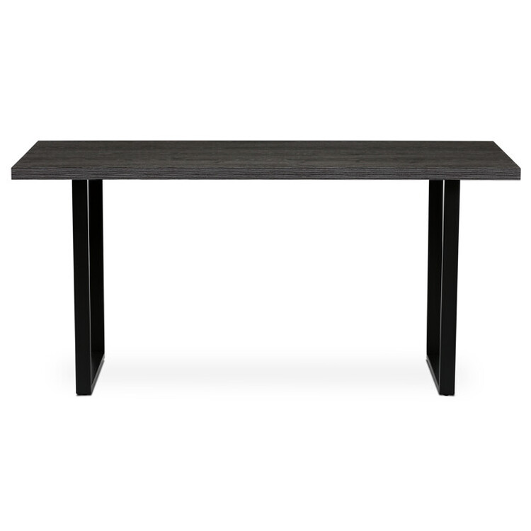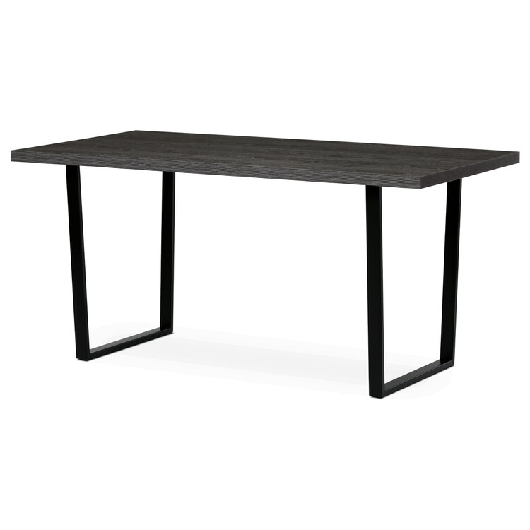 Jídelní stůl o rozměrech 160×80×76 cm kombinuje desku z lamina s dekorem šedého dubu a pevnou kovovou podnož v černém matném provedení. Deska je opatřena ABS hranou, která chrání okraje proti poškození a usnadňuje údržbu. Stabilní kovová konstrukce podnože zajišťuje pevnost a dlouhou životnost stolu, přičemž materiály jsou navrženy tak, aby odolávaly běžnému opotřebení a snadno se udržovaly v čistotě. Díky svým rozměrům a neutrálnímu designu je vhodný pro různé typy interiérů, kde poskytuje dostatek prostoru pro pohodlné stolování.