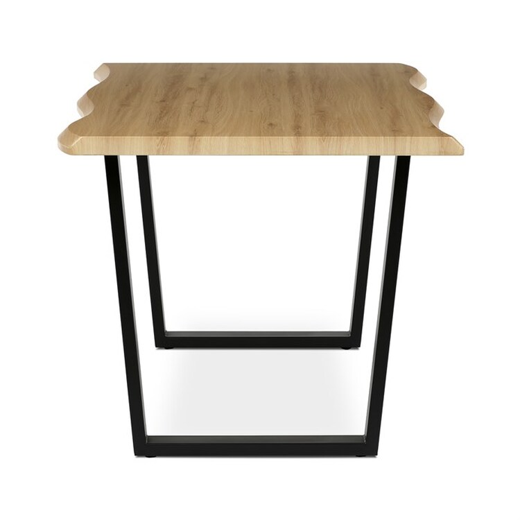 Jídelní stůl značky Autronic v industriálním stylu přinese do vaší jídelny výrazný designový prvek. Deska stolu v dekoru divokého dubu nabízí atraktivní strukturu a odolnost díky kvalitní MDF. Působivý vzhled je podtržen černými kovovými nohami, které poskytují stabilitu a vytvářejí moderní kontrast k odstínu divokého dubu desky. Atypický tvar desky dodává stolu originalitu, zatímco jeho pevná konstrukce zajišťuje dlouhou životnost. Tento stůl je ideální pro milovníky designu, kteří hledají spojení funkčnosti a stylu.