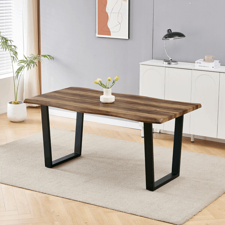 Jídelní stůl značky Autronic v industriálním stylu přinese do vaší jídelny výrazný designový prvek. Deska stolu v dekoru starého dřeva nabízí atraktivní strukturu a odolnost díky kvalitní MDF. Působivý vzhled je podtržen černými kovovými nohami, které poskytují stabilitu a vytvářejí moderní kontrast k odstínu starého dřeva desky. Atypický tvar desky dodává stolu originalitu, zatímco jeho pevná konstrukce zajišťuje dlouhou životnost. Tento stůl je ideální pro milovníky designu, kteří hledají spojení funkčnosti a stylu.