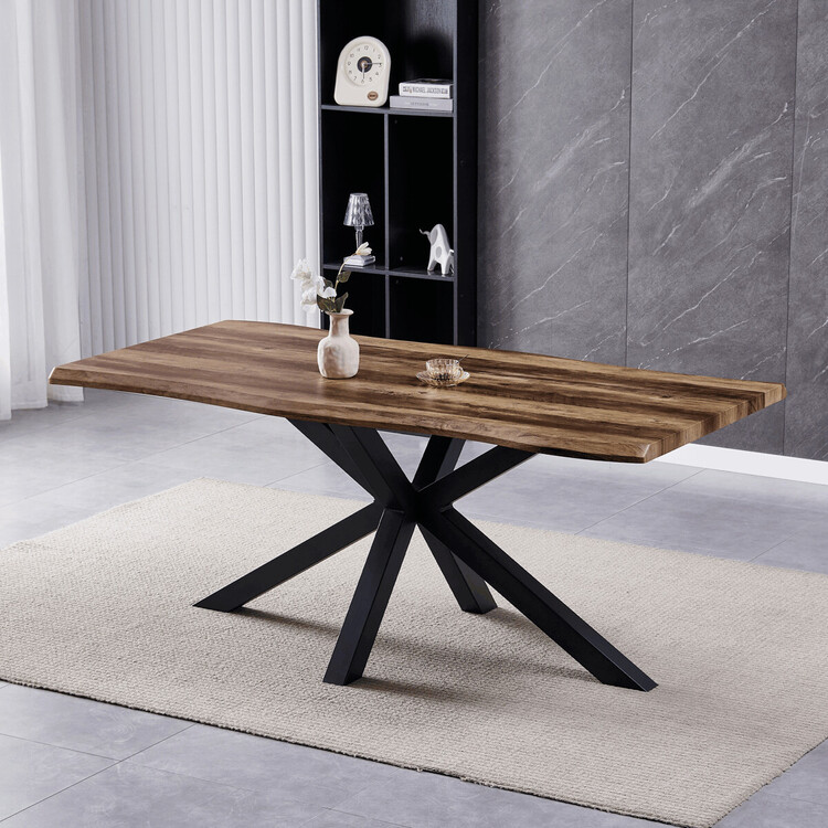 Moderní jídelní stůl od značky Autronic zaujme svým elegantním designem a kombinací přírodního vzhledu desky s industriální kovovou podnoží. Povrch desky v dekoru starého dřeva dodává stolu jedinečný charakter, zatímco černé nohy zajišťují stabilitu a stylový kontrast. Obdélníkový tvar a dostatečný prostor umožní pohodlné stolování pro celou rodinu. Tento stůl je ideální volbou pro moderní i rustikální interiéry, kde se stane dominantním prvkem každé jídelny.