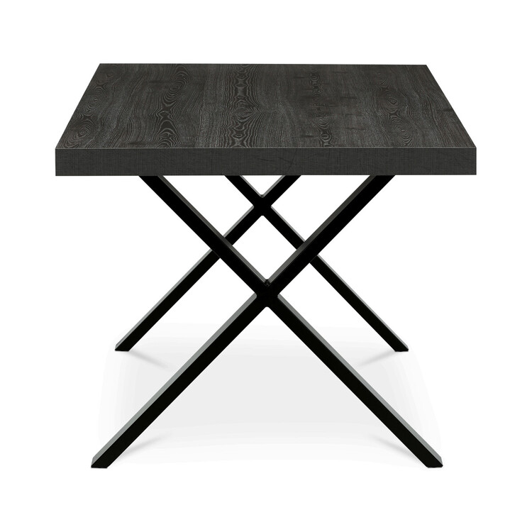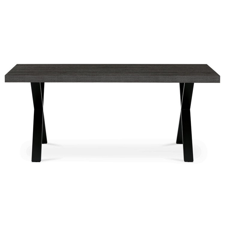 Jídelní stůl HT-R5316 GREY nabízí moderní kombinaci šedého dubového dekoru na MDF desce s matnou povrchovou úpravou a pevnou kovovou podnoží ve tvaru X v černé barvě. Deska stolu je vyrobena z lamina s ABS hranou, která zvyšuje odolnost proti poškození a usnadňuje údržbu. Stabilní kovové nohy... více informací o zboží