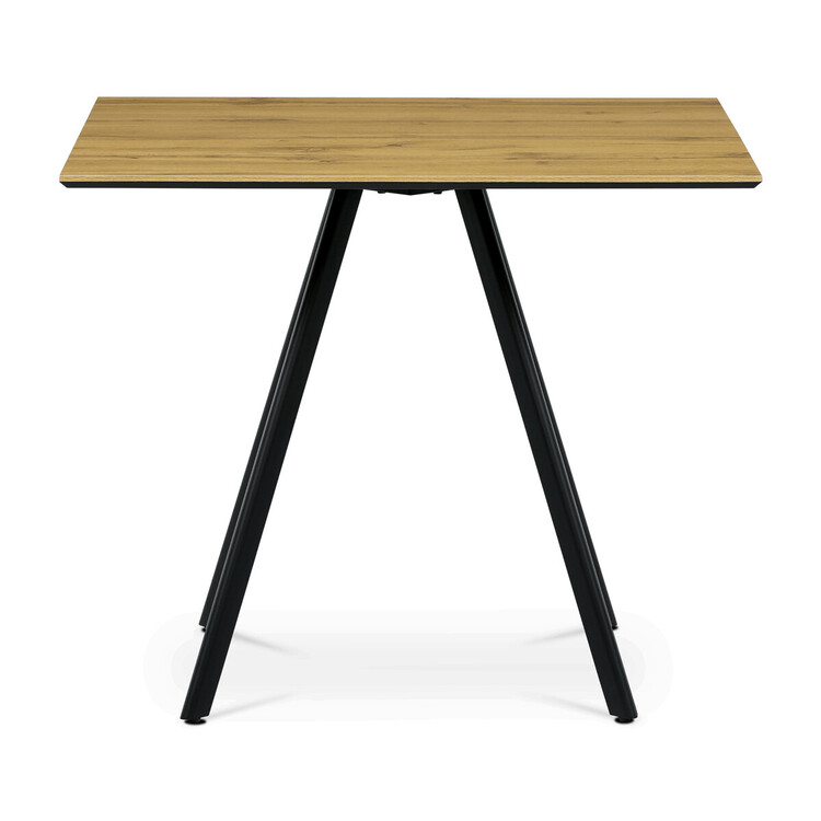 Jídelní stůl HT-R5190 OAK nabízí kulatý tvar o průměru 90 cm a výšce 76 cm, ideální pro menší jídelní prostory. Deska je vyrobena z MDF s matnou lamino povrchovou úpravou v dekoru dub, opatřená ABS hranou pro zvýšení odolnosti proti poškození. Stabilní kovová podnož v černé barvě zajišťuje pevnou oporu a dlouhou životnost, přičemž rektifikační nohy umožňují vyrovnání nerovností podlahy. Kombinace kvalitních materiálů a precizního provedení dává stolu moderní a zároveň přírodní vzhled, který se snadno integruje do různých interiérů. Nosnost a rozměry stolu jsou přizpůsobeny běžnému domácímu použití.