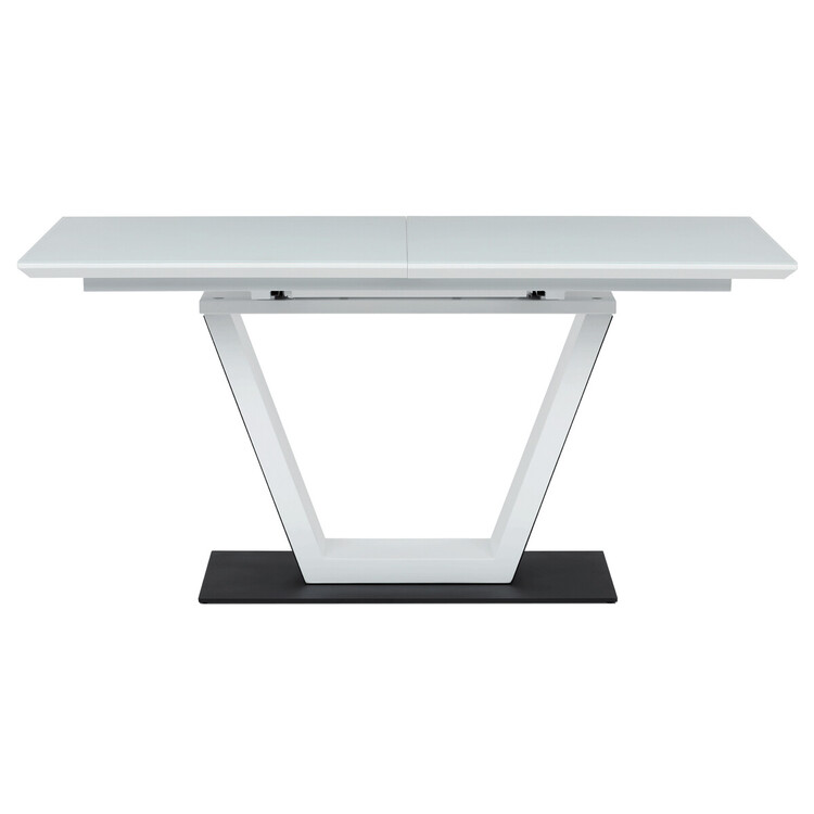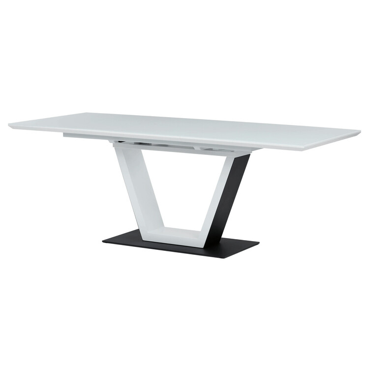 Luxusní rozkládací jídelní stůl značky Autronic v elegantní bílé barvě je ideální volbou pro moderní interiéry. Obdélníková deska z tvrzeného skla nabízí odolný a snadno udržovatelný povrch. Jedinečný design s centrální podnoží ve tvaru „V“ na stabilní základně dodává stolu výrazný charakter. Díky rozkládacímu mechanismu lze šířku stolu snadno přizpůsobit aktuálním potřebám, což z něj činí perfektní řešení pro rodinné večeře i společenské události. Skvělá kombinace stylu a praktičnosti.