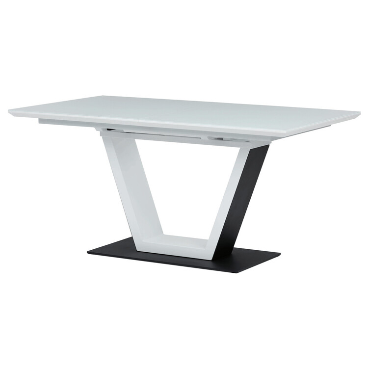 Luxusní rozkládací jídelní stůl značky Autronic v elegantní bílé barvě je ideální volbou pro moderní interiéry. Obdélníková deska z tvrzeného skla nabízí odolný a snadno udržovatelný povrch. Jedinečný design s centrální podnoží ve tvaru „V“ na stabilní základně dodává stolu výrazný charakter.... více informací o zboží