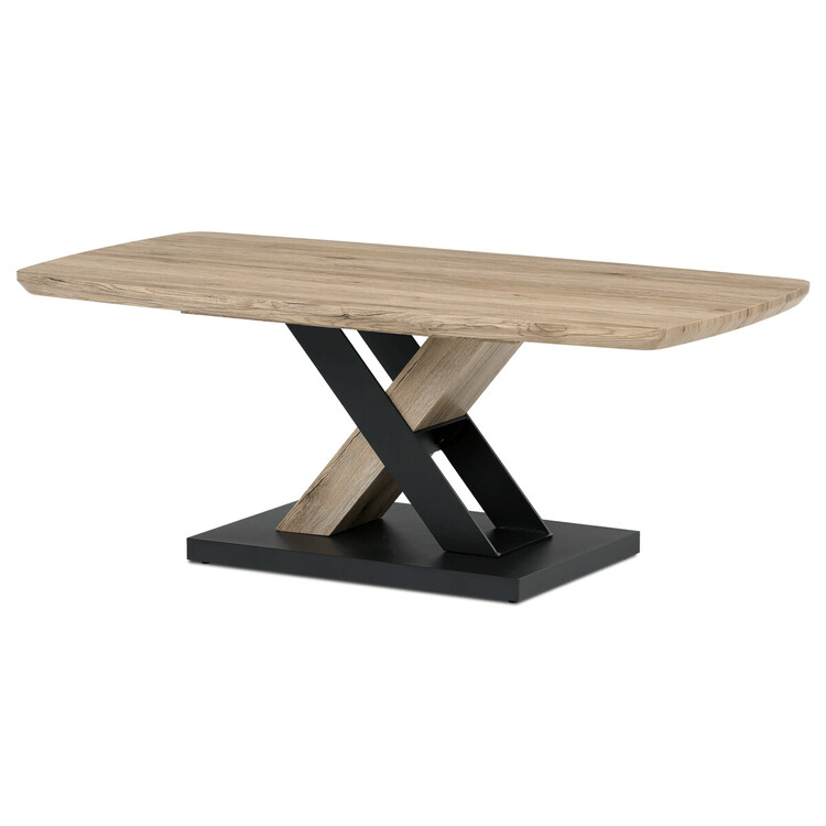 Konferenční stolek značky Autronic zaujme moderním designem s dekorem dubu San Remo, který vnese do vašeho obývacího pokoje příjemnou atmosféru. Atypická deska z MDF s matnou povrchovou úpravou upevněná na centrální konstrukci, která kombinuje přírodní a kovové prvky. Stabilní podnož zajišťuje pevnost a odolnost, díky čemuž je stolek nejen stylovým, ale i praktickým doplňkem. Ideální pro každodenní využití i jako reprezentativní prvek vašeho interiéru.