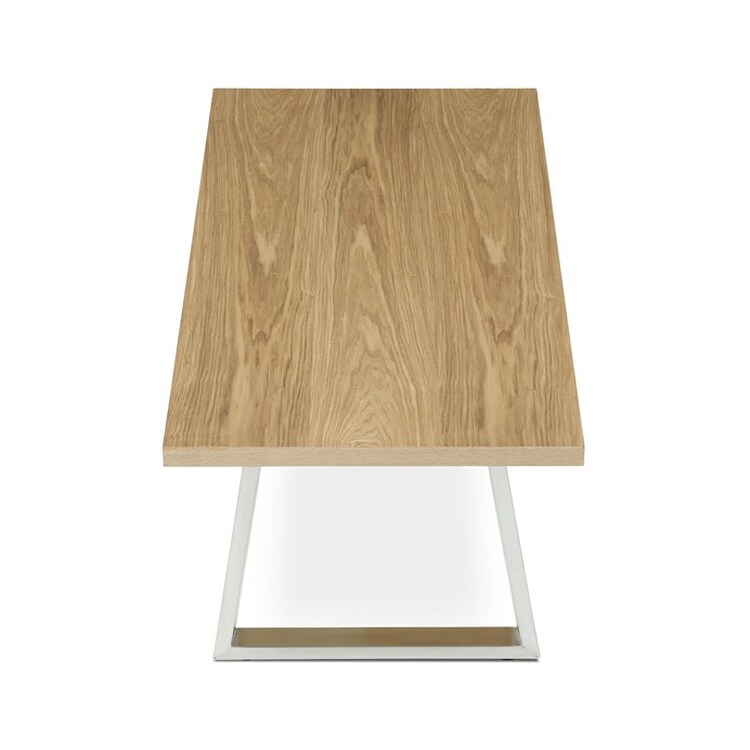 Konferenční stůl značky Autronic v moderním designu, který skvěle zapadne do každého interiéru. Jeho deska je vyrobena z kvalitní dýhy s dekorem dubu, což dodává stolu elegantní a přírodní vzhled. Nohy jsou vyrobeny z broušeného nerezu. Stolek je ideální pro každodenní posezení v rodinném kruhu nebo s přáteli.