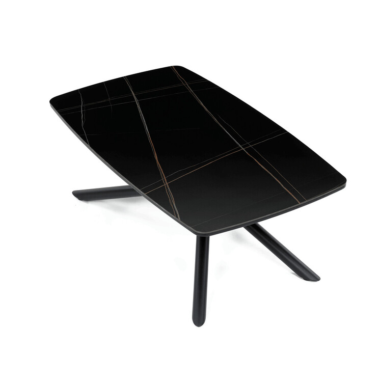 Tento konferenční stolek značky Autronic v industriálním stylu zaujme svým odvážným designem a atypickou podnoží. Deska ze slinuté keramiky s imitací černého mramoru dodává stolu luxusní vzhled. Pevná kovová konstrukce v černé barvě poskytuje stabilitu a elegantně kontrastuje s tmavou deskou.... více informací o zboží
