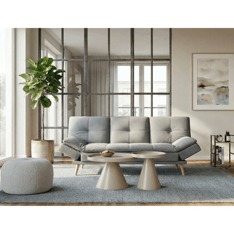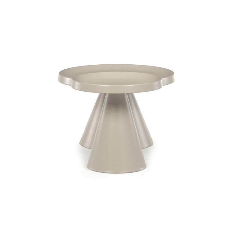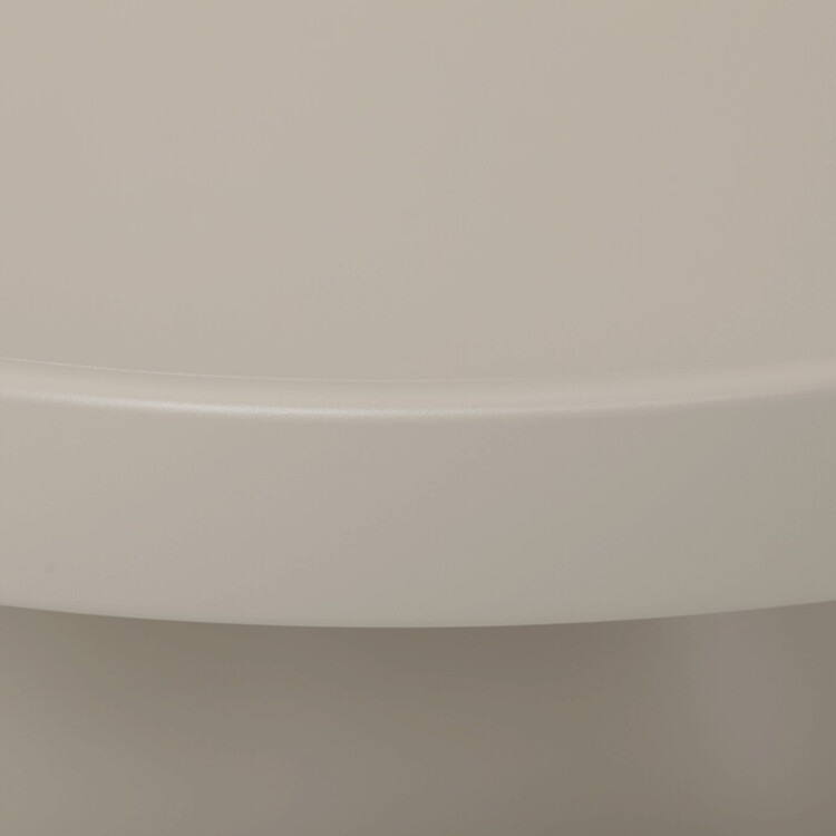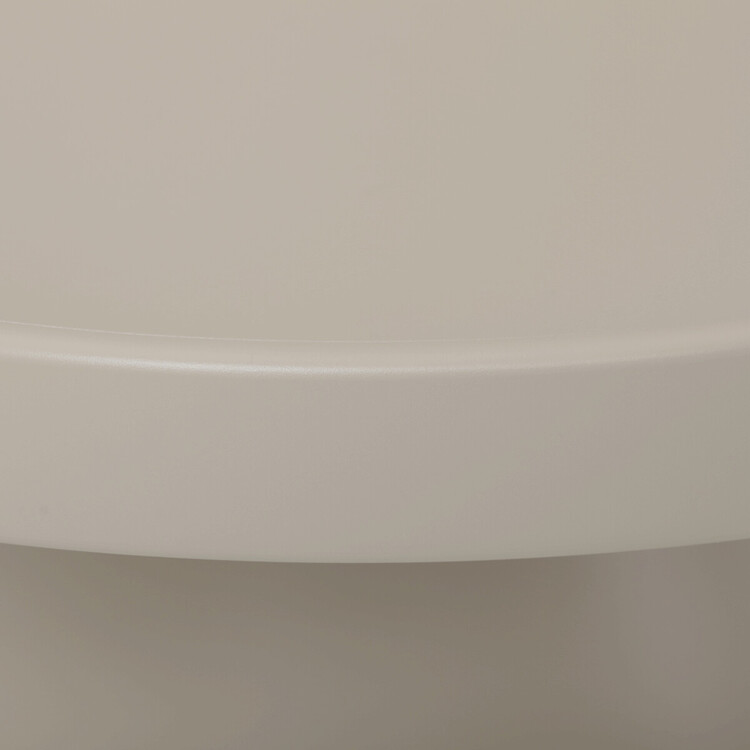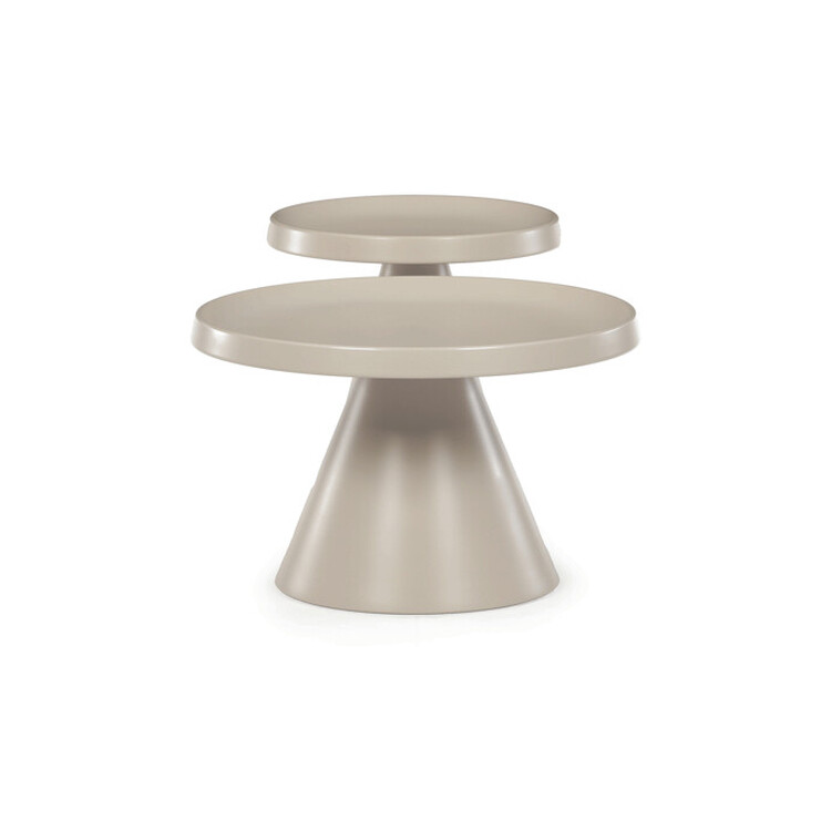 Sada dvou konferenčních stolů v béžovém matném provedení nabízí kombinaci funkčnosti a moderního designu. Obě desky i nohy jsou vyrobeny z kovu, což zajišťuje stabilitu a dlouhou životnost, přičemž povrchová úprava usnadňuje údržbu. Větší stůl má průměr 68,5 cm a výšku 43,5 cm, menší pak průměr 49 cm a výšku 49,5 cm, což umožňuje variabilní uspořádání v prostoru. Dekorativní hrany desek podtrhují jednoduchý a čistý vzhled, který se hodí do moderních interiérů. Pevná kovová podnož zaručuje stabilitu při běžném používání.