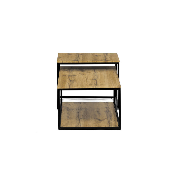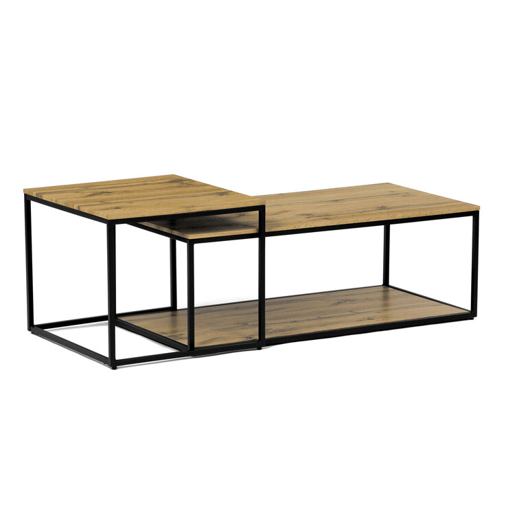 Konferenční stolek značky Autronic v industriálním stylu kombinuje eleganci a funkčnost. Deska z MDF v dekoru divokého dubu nabízí teplý přírodní vzhled, který krásně kontrastuje s černou kovovou konstrukcí. Díky svému dvouúrovňovému designu poskytuje stolek nejen dostatek místa pro odkládání, ale také praktický úložný prostor na spodní polici. Tento stolek je ideálním doplňkem do moderních obývacích pokojů, kde vynikne svou jednoduchostí a zároveň praktičností. Matný povrch desky je odolný a snadno se udržuje. Rozměr menšího stolku je 55 × 50 × 43,5 cm.