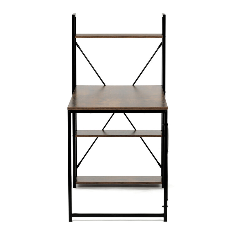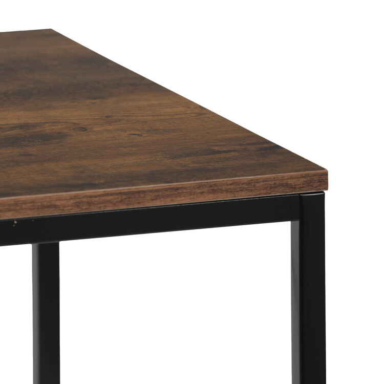 Pracovní stůl značky Autronic v industriálním stylu kombinuje funkčnost a moderní design. Hnědá MDF deska s dekorem starého dřeva a matnou úpravou přináší do interiéru teplý, přírodní vzhled. Stabilní černá kovová konstrukce se čtvercovými nohami zaručuje pevnost a odolnost. Praktické policie po straně poskytují dostatek úložného prostoru pro knihy, dokumenty nebo dekorace, což oceníte v každé pracovně. Stůl se hodí do domácí kanceláře či pracovny a díky svému industriálnímu vzhledu snadno zapadne do moderních interiérů.Rozměr police: 60 × 21 cm.