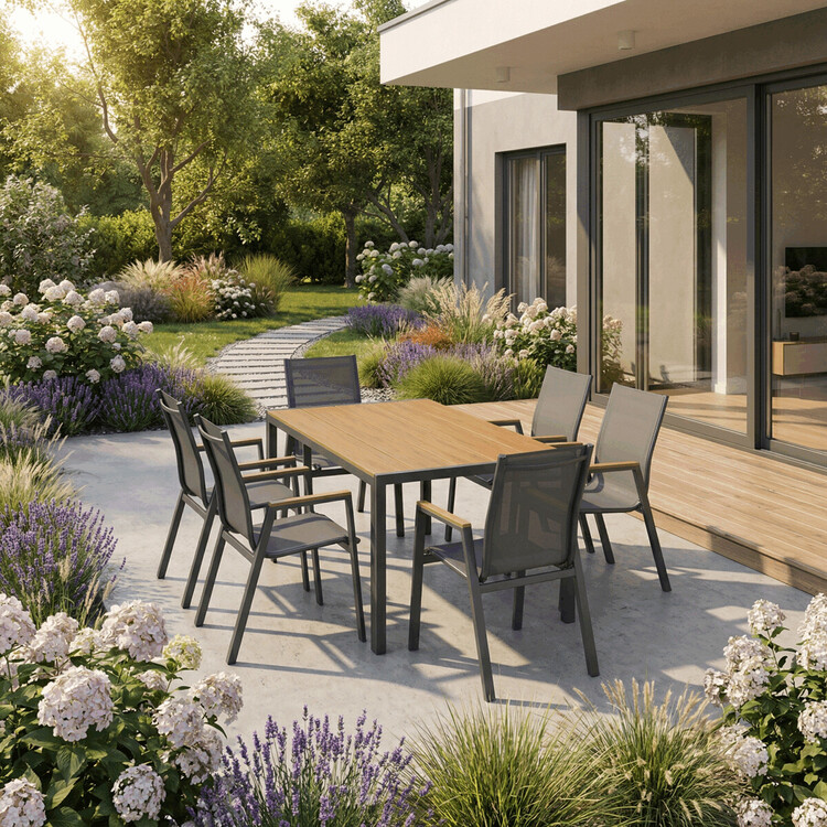 Obdélníkový zahradní stůl značky Autronic je skvělým doplňkem pro každé venkovní posezení. Stůl kombinuje elegantní polywood s kovovou konstrukcí v barvách antracitu. Dubový odstín desky dodává přírodní vzhled, který se hodí do jakéhokoliv prostředí. Povrch je navíc odolný proti poškrábání,... více informací o zboží