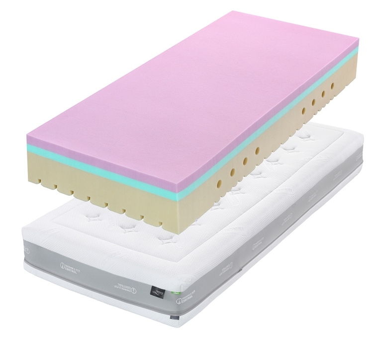 • GelTouch hybridní pěna (strana relax) Snoubí hebkost latexu s dokonalou distribucí tlaku gelových matrací. Vysoce prodyšná, napomáhá správné termoregulaci.