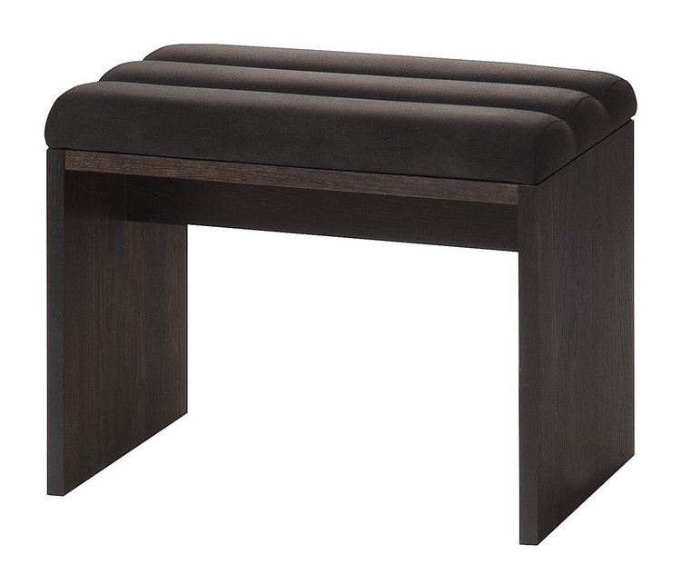 Taburet k toaletnímu stolku ze sektorové řady PORTI značkového výrobce Szynaka. Systém PORTI je exkluzivní kolekce navržena v moderním duchu. Struktura ušlechtilého masivního dubu na přední straně a přírodní dýha na korpusu zdůrazňuje velmi klasickou barvu čokoládový dub. Opakující se prvek riflování v kombinaci s černým sklem je dekorační motiv, který se odráží v každém bloku. Celá řada se vyznačuje elegancí a jednoduchými tvary, které zaručují plné využití prostoru. Barevné provedení – antický dub. Sedák je potažen kvalitní látkou imitující kůži se snadnou údržbou čistění – barva černá Carabu 33.CASA 75024