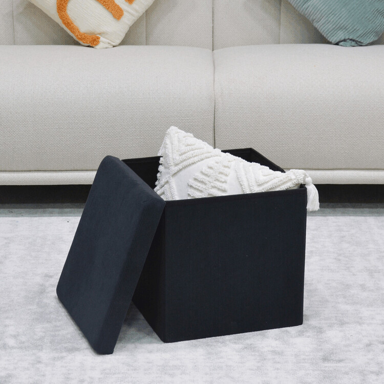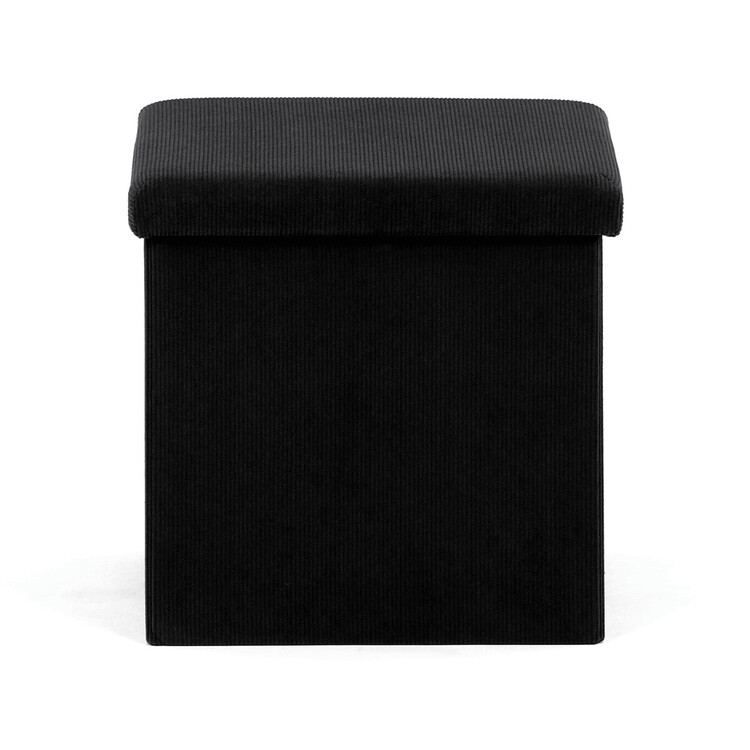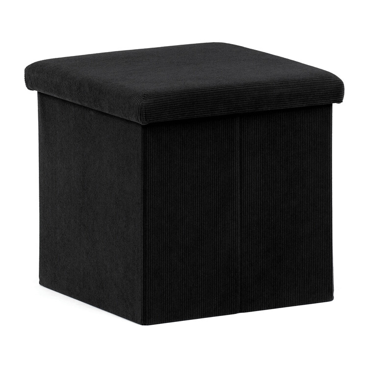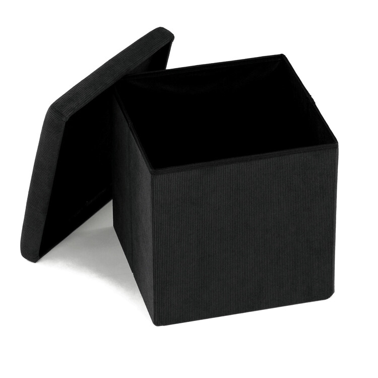 Čtvercový taburet značky Autronic v černé barvě je skvělou volbou pro ty, kdo hledají funkční a stylový doplněk do moderního interiéru. Potah z manšestrové látky dodává nábytku jemný, elegantní vzhled a zároveň působí útulně. Praktický úložný prostor uvnitř umožňuje snadné schování drobností, které chcete mít po ruce, ale ne na očích. Taburet je skládací, což oceníte zejména při úspoře místa. Díky vysoké nosnosti zvládne i každodenní používání jako sedací prvek.