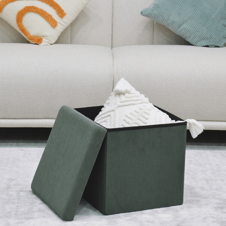 Čtvercový taburet značky Autronic v zeleném odstínu je skvělou volbou pro ty, kdo hledají funkční a stylový doplněk do moderního interiéru. Potah z manšestrové látky dodává nábytku jemný, elegantní vzhled a zároveň působí útulně. Praktický úložný prostor uvnitř umožňuje snadné schování drobností, které chcete mít po ruce, ale ne na očích. Taburet je skládací, což oceníte zejména při úspoře místa. Díky vysoké nosnosti zvládne i každodenní používání jako sedací prvek.