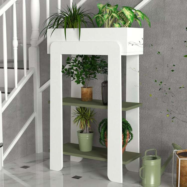 Stojan na květiny je vyroben z kvalitního materiálu LTD s tloušťkou 18 mm, což zajišťuje jeho dlouhou životnost a stabilitu. Jeho elegantní design v kombinaci bílé a zelené barvy se perfektně hodí do jakéhokoliv interiéru, přičemž dodává svěží a přírodní nádech. Praktický regálek umožňuje uspořádání a vystavení vašich rostlin na různých úrovních.