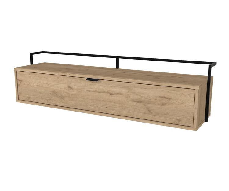 Závěsný TV stolek je vyroben z kvalitního materiálu LTD a kovu, což zaručuje jeho pevnost a dlouhou životnost. Jeho elegantní světle hnědá barva a čistý design přidají vašemu obývacímu pokoji moderní nádech. Stolek je vybaven praktickou skříňkou s jedněmi dvířky, což poskytuje dostatek úložného prostoru pro vaše elektronická zařízení a další příslušenství.