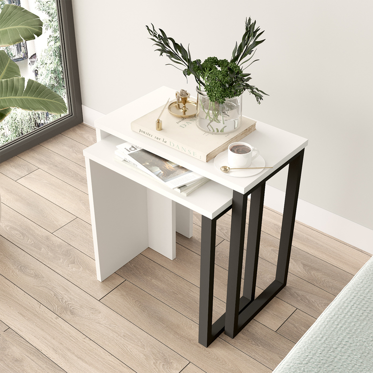Sada konferenčních stolků je skvělým doplňkem do každého moderního obývacího pokoje. Spojení kvalitního LTD materiálu a kovu zaručuje vysokou odolnost a stylový vzhled. Díky luxusnímu designu a obdélníkovému tvaru přinášejí tyto stolky eleganci a praktičnost. Sada obsahuje dva stolky různých velikostí, které lze snadno kombinovat nebo používat samostatně.