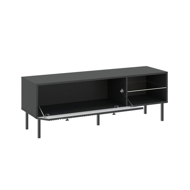 Televizní stolek s výklopnými dvířky v elegantním stylu, je vyroben z kvalitní LTD desky v barevném provedení antracit. Přední část nábytku je doplněna dekorem frézovaných dveří. Vysoké kovové nožky nábytku a úchyty jsou v barevném provedení antracit. V naší nabídce naleznete více variant nábytku této řady. Dodáváme v demontovaném stavu.CASA 85039