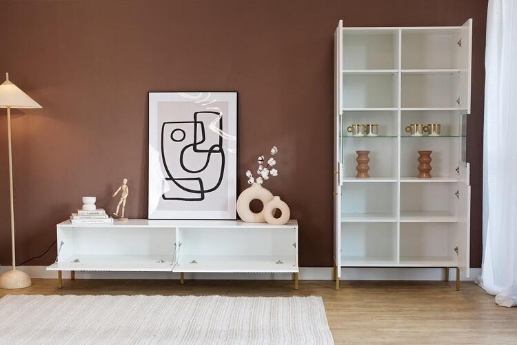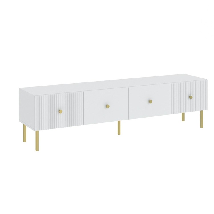 Televizní stolek se dvěma výklopnými dvířky v elegantním stylu, je vyroben z kvalitní LTD desky v barevném provedení bílá. Přední část nábytku je doplněna dekorem frézovaných dveří. Vysoké kovové nožky nábytku a úchyty jsou v barevném provedení zlatá. V naší nabídce naleznete více variant... více informací o zboží