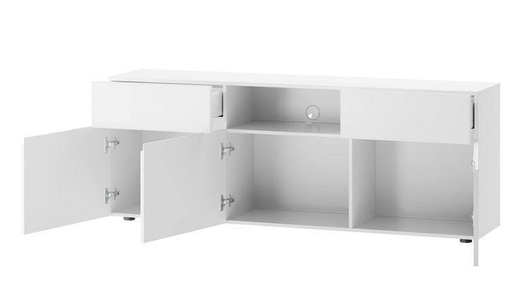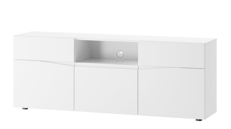 Televizní stolek třídveřový. Stolek je vyroben z kvalitní LTD desky v barvě bílá mat, dvířka jsou vyrobeny z desky MDF v barvě bílá mat. Stolek má v horní části po stranách 2 zásuvky. Nábytek je bezúchytový, úchyty nahrazuje vyfrézování v předních dvířkách. Dodáváme v demontovaném stavu.CASA 75047
