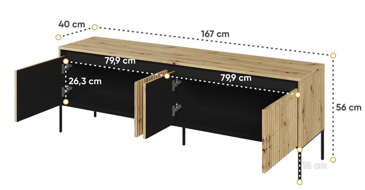 Televizní stolek 4D s LED 167 IPOLIS dub artisan/černá