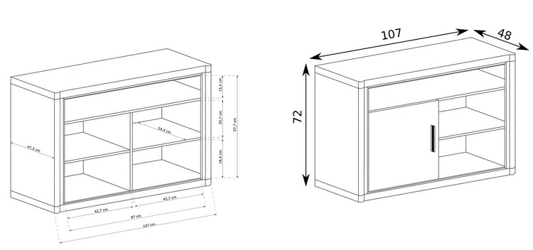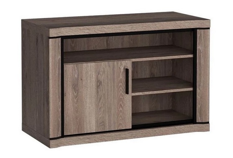 Televizní stolek s poličkami a jedny dvířky. Má zajímavé provedení v podobě netradičně vyřezávaných vrchních a spodních desek. Systém je exkluzivní kolekce navržena v moderním duchu. Celá řada se vyznačuje masivním vzhledem a jednoduchými tvary. Nábytek je vyroben z kvalitního LTD s lištami z... více informací o zboží