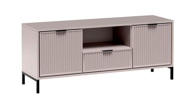 Nábytek je zdoben vzorem na čelních stranách v podobě frézovaných drážek. Všechny kusy nábytku z této kolekce stojí na černých kovových nožkách. Jednoduché a funkční tvary se hodí do obývacího pokoje, ložnice i jídelny.