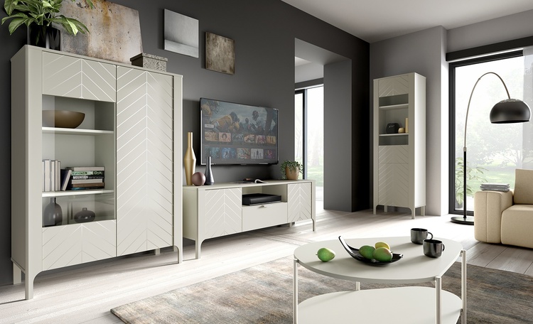 Tento elegantní televizní stolek v barvě kašmír (béžová s nádechem